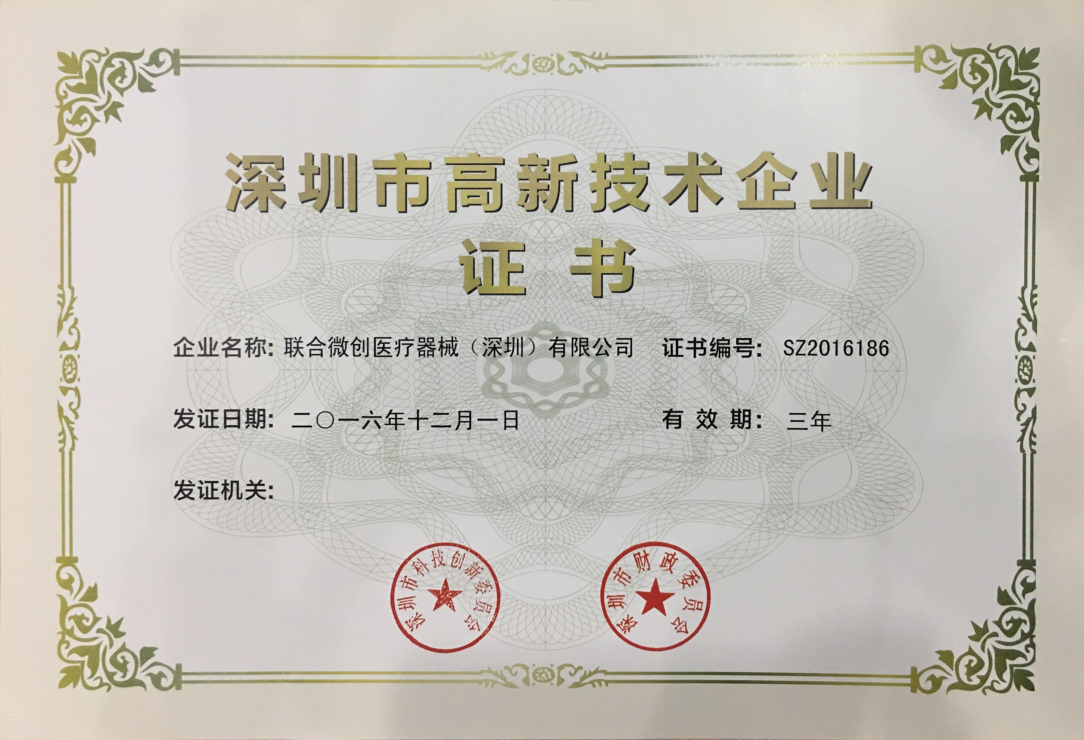 “深圳市高新技術(shù)企業(yè)”證書。