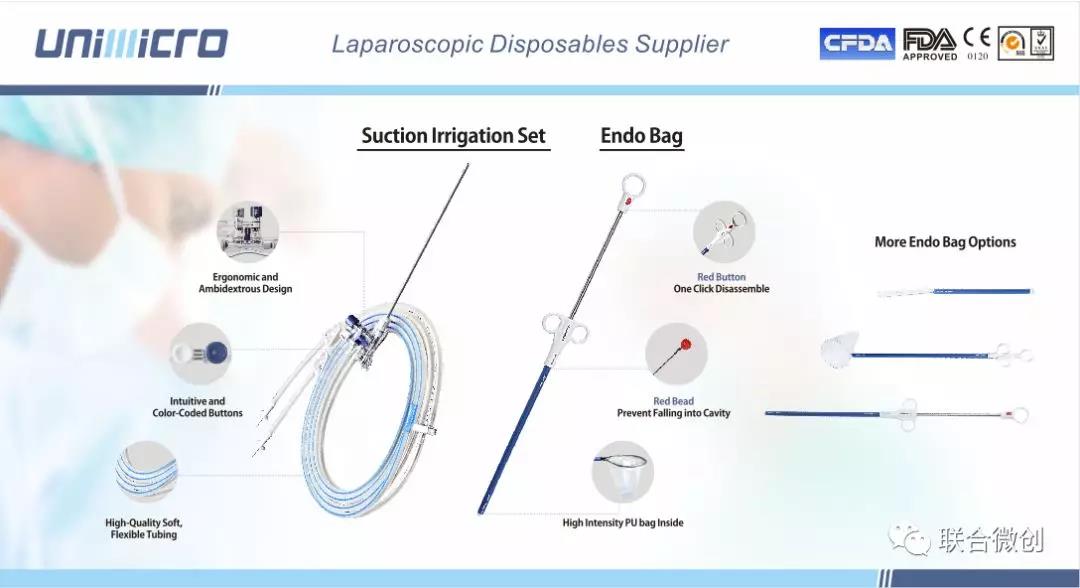2018,聯(lián)合微創(chuàng)將攜全系列腹腔鏡產(chǎn)品亮相迪拜展:一次性內(nèi)窺鏡穿刺器、沖洗吸引器、取物袋、剪刀、夾鉗、電凝等系列產(chǎn)品。
